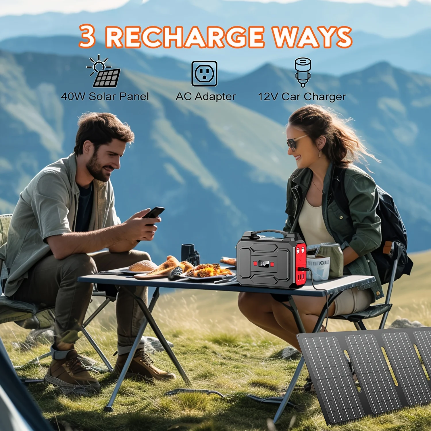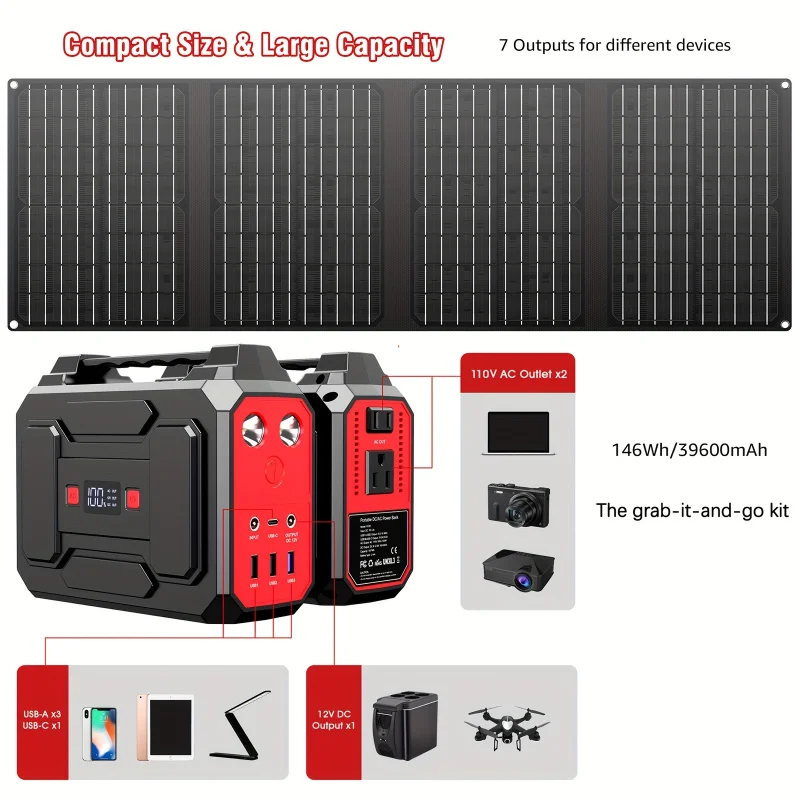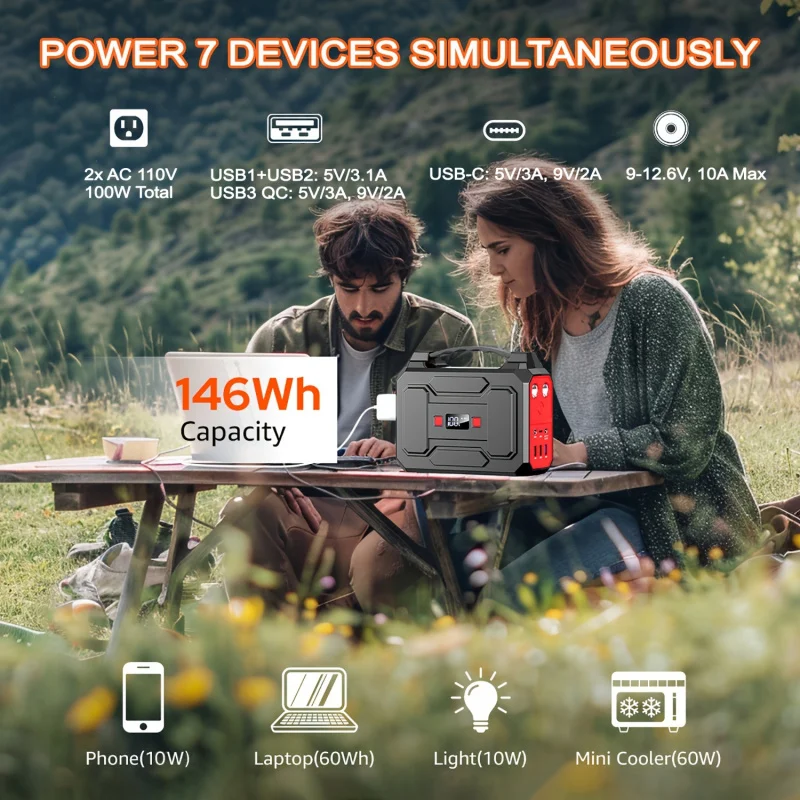100W 146Wh Portable Power Station With 40W Foldable Solar Panel Charger