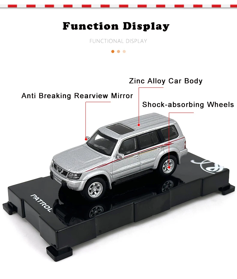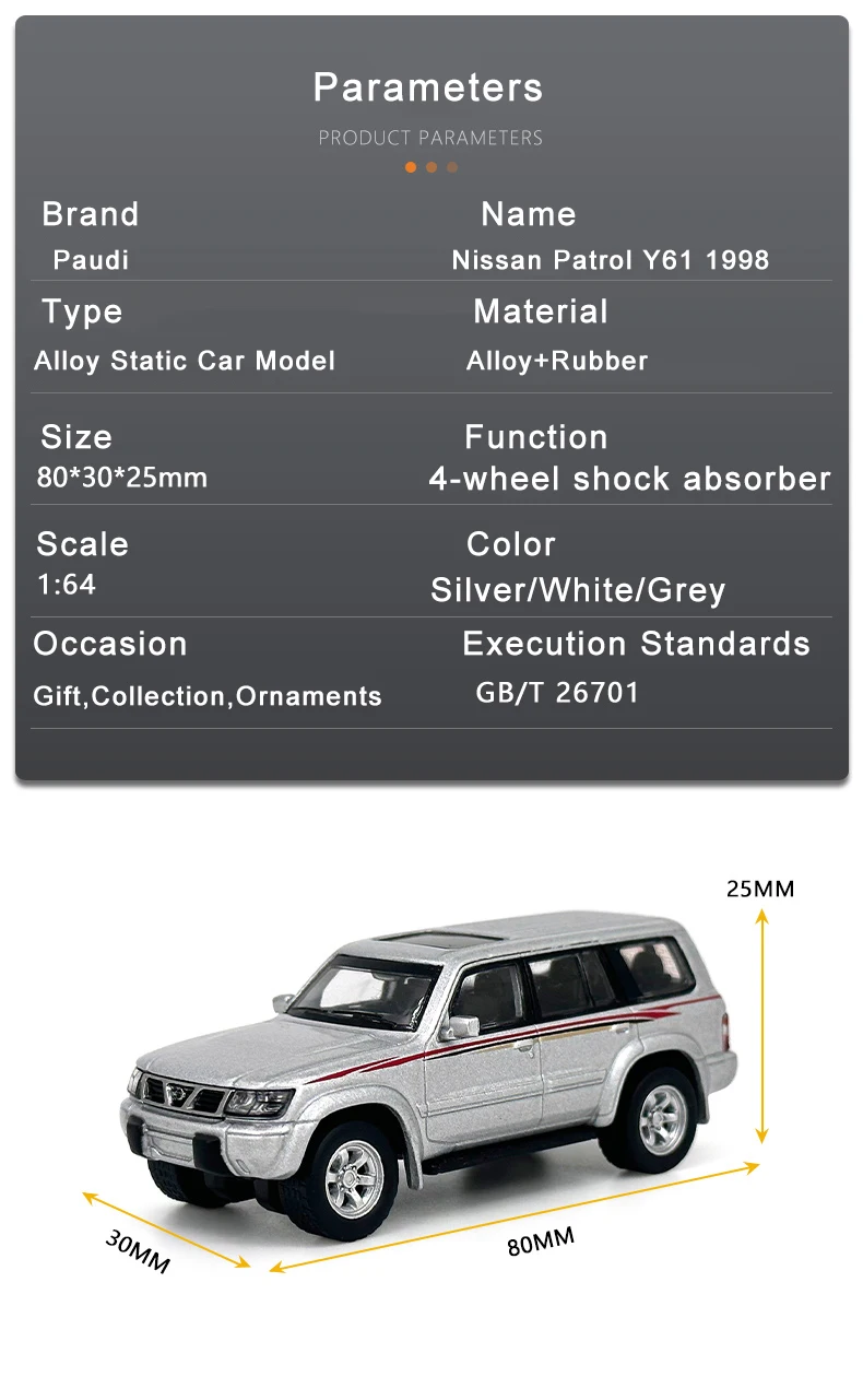 1:64 Scale Nissan Patrol 1998 Y61 Car Model 1:64 Metal Diecast Miniature Ariya X-trail Q50S Q70L QX70S QX60 QX80 Vehicle Toys