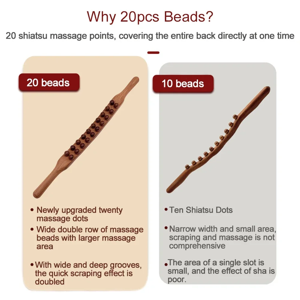 1. [Comfortable Massage Beads] The wooden scraping stick has rounded massage beads without burrs, embedded in the stick without dropping the beads.