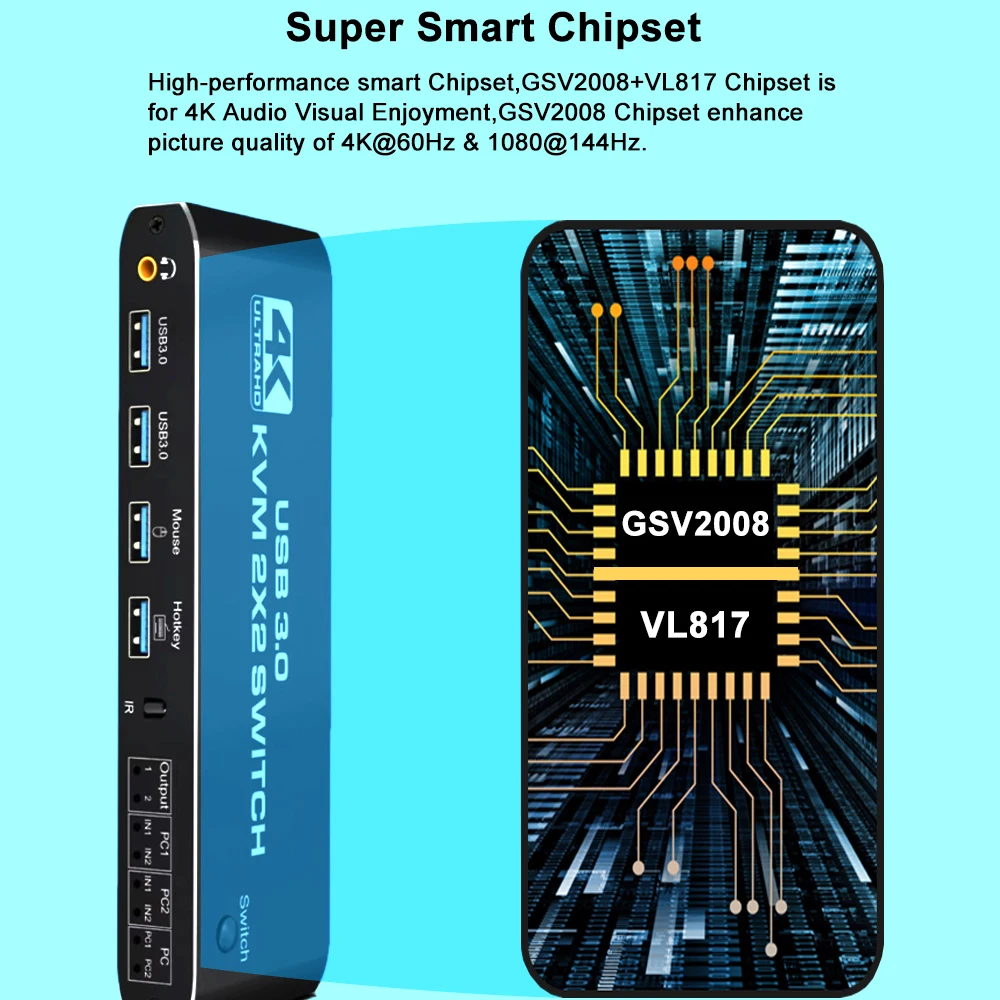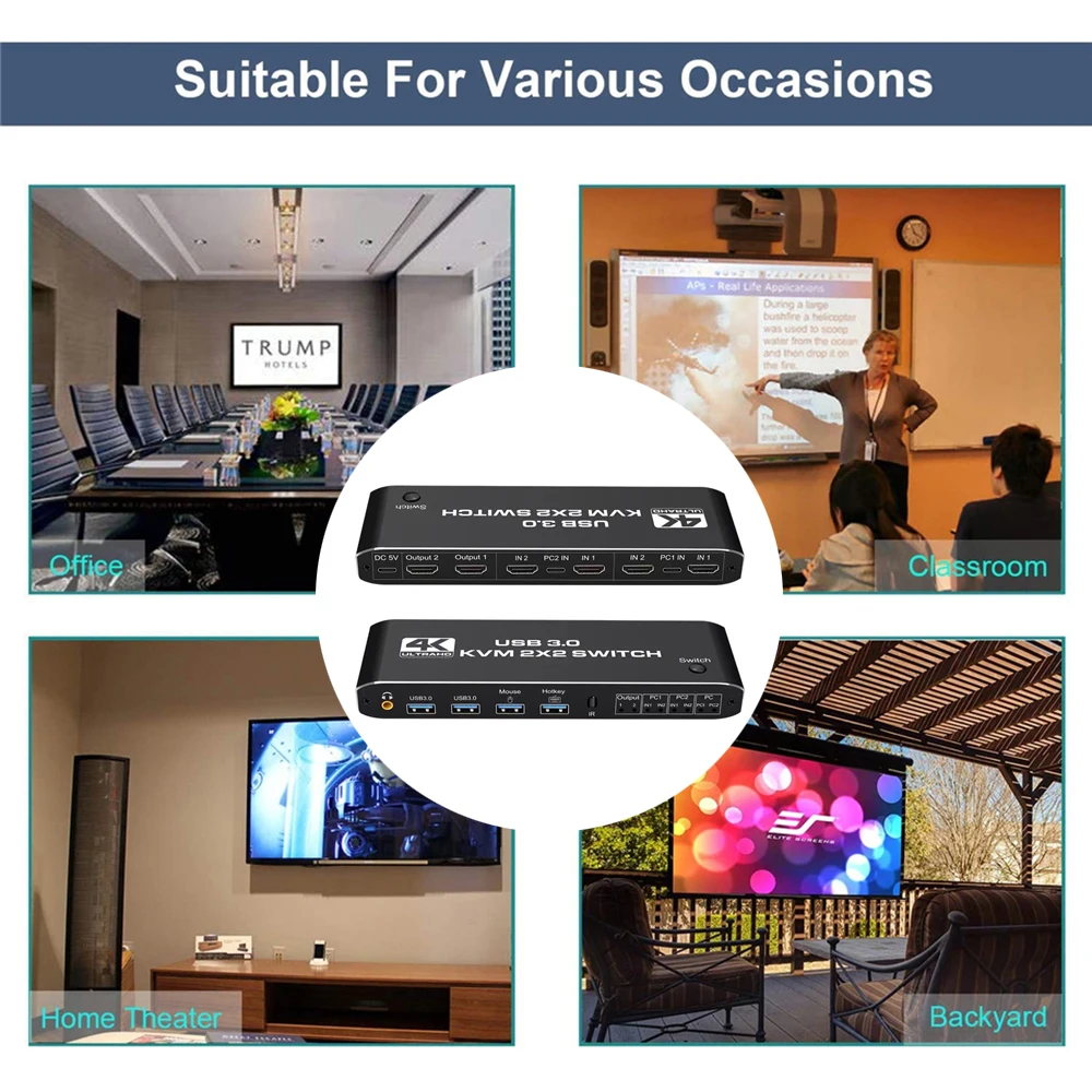 – Product type: HDMI USB 3.0 KVM switcher (2 in 2 out)