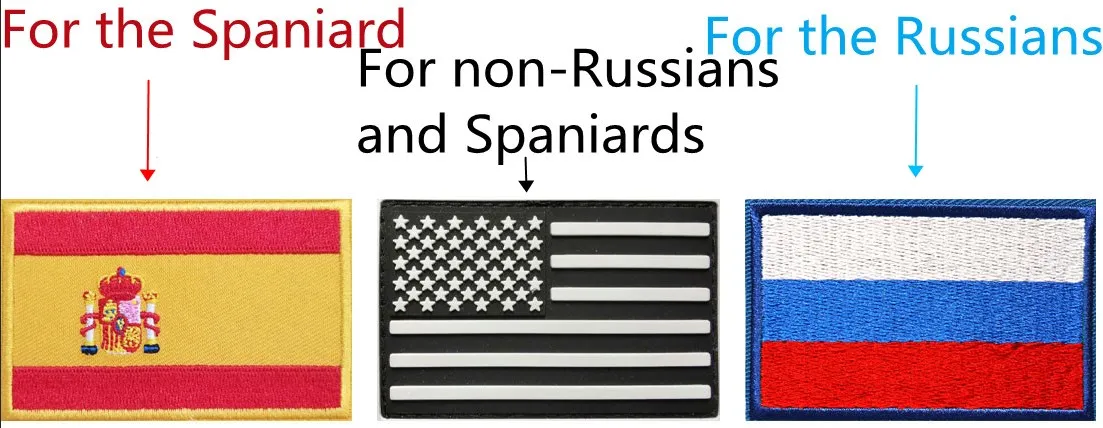 If you are non-Russian and Spanish, you will receive an American flag Velcro.