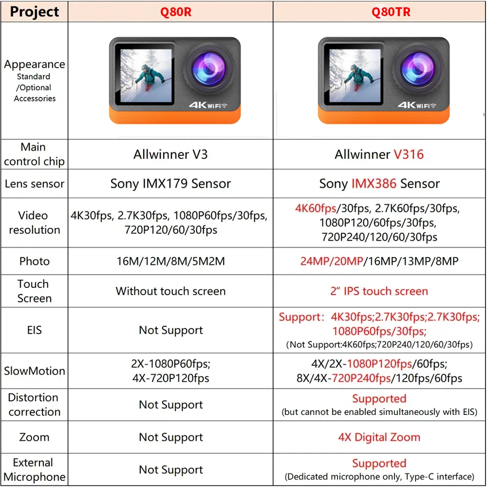 Q80R-4K30fps, 2.7K30fps, 1080P120fps/60fps/30fps, 720P120fps