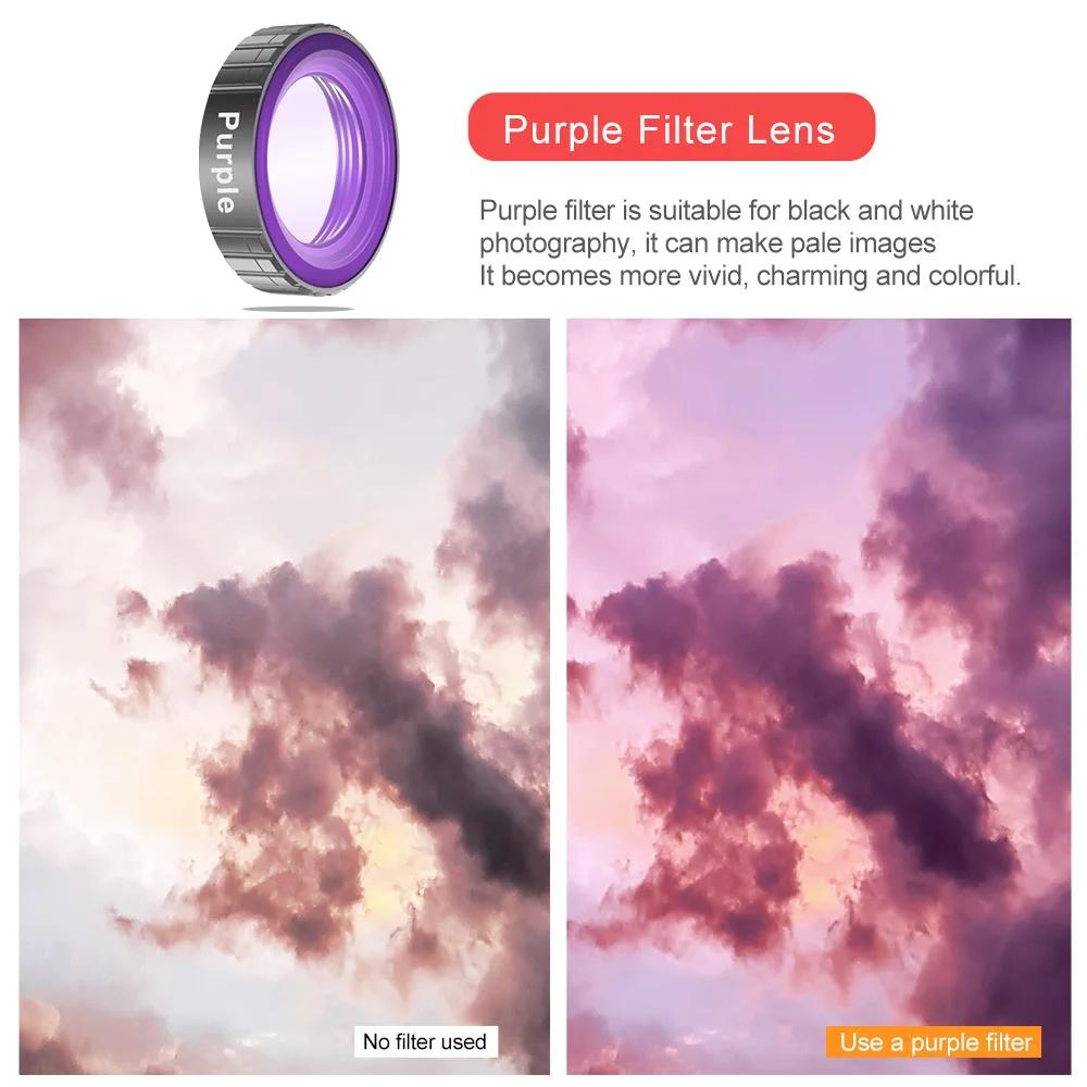 Purple filter is suitable for black and white photography, it can make pale images It becomes more vivid, charming and colorful.