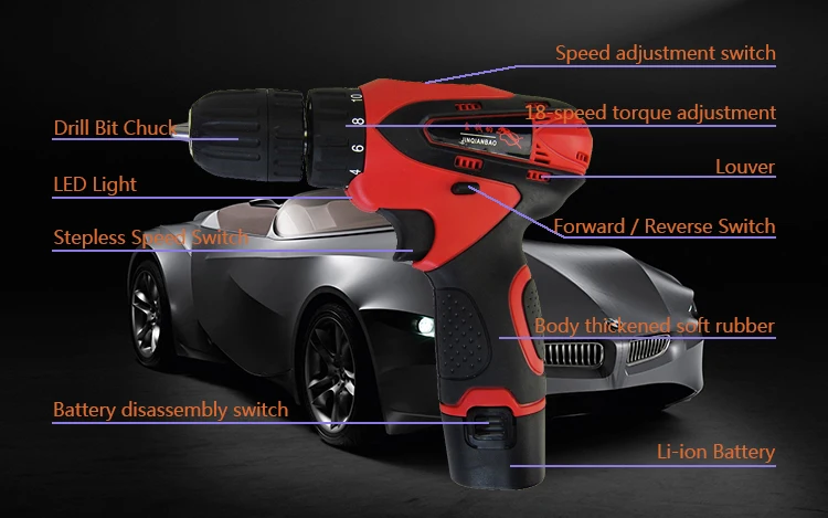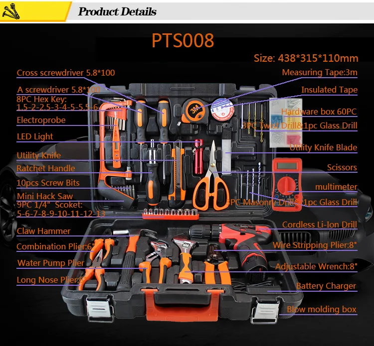 56pcs 12V/21V Electrician Tools Box Power Tools Kit Hand Tools Set Tool Case Cordless Li-Ion Drill with Multimeter
