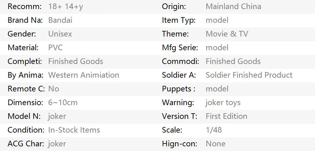 5pcs/set The Dark Knight Joker PVC Action Figure Collectible Model Toy 6~10cm