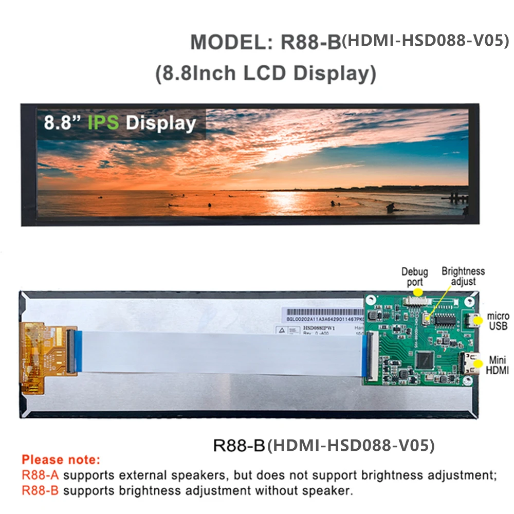 R88-B(HDMI-HSD088-V05) supports brightness adjustment without speaker