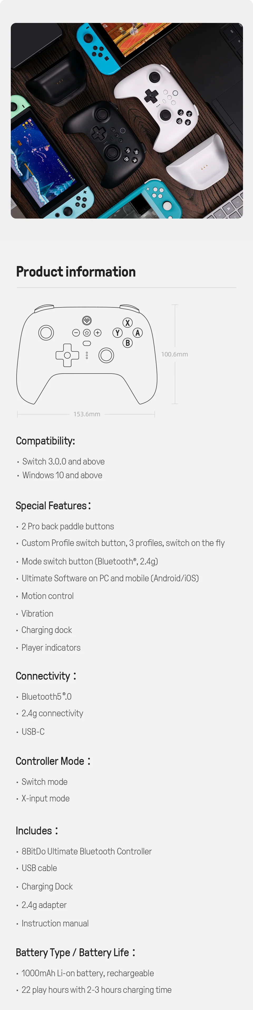Switch. Windows. 8BitDo controllers are designed to be as versatile as possible with each of your modern devices. Now with a 2-way mode switch, you can instantly pair your controller via Bluetooth ®