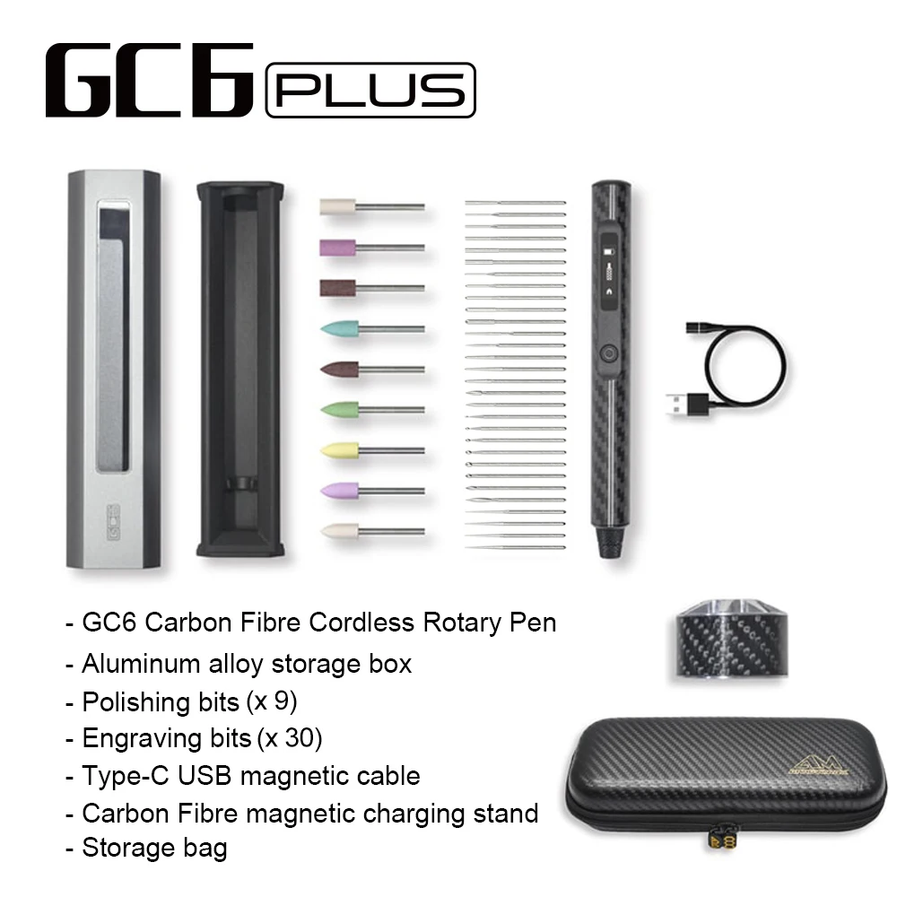 Upgrading to the Plus version of the GC6 brings an exciting addition: a carbon fiber machined magnetic charger holder. This innovative accessory enhances the user experience by providing a secure and convenient way to charge your GC6, especially for those who work with it for extended periods.