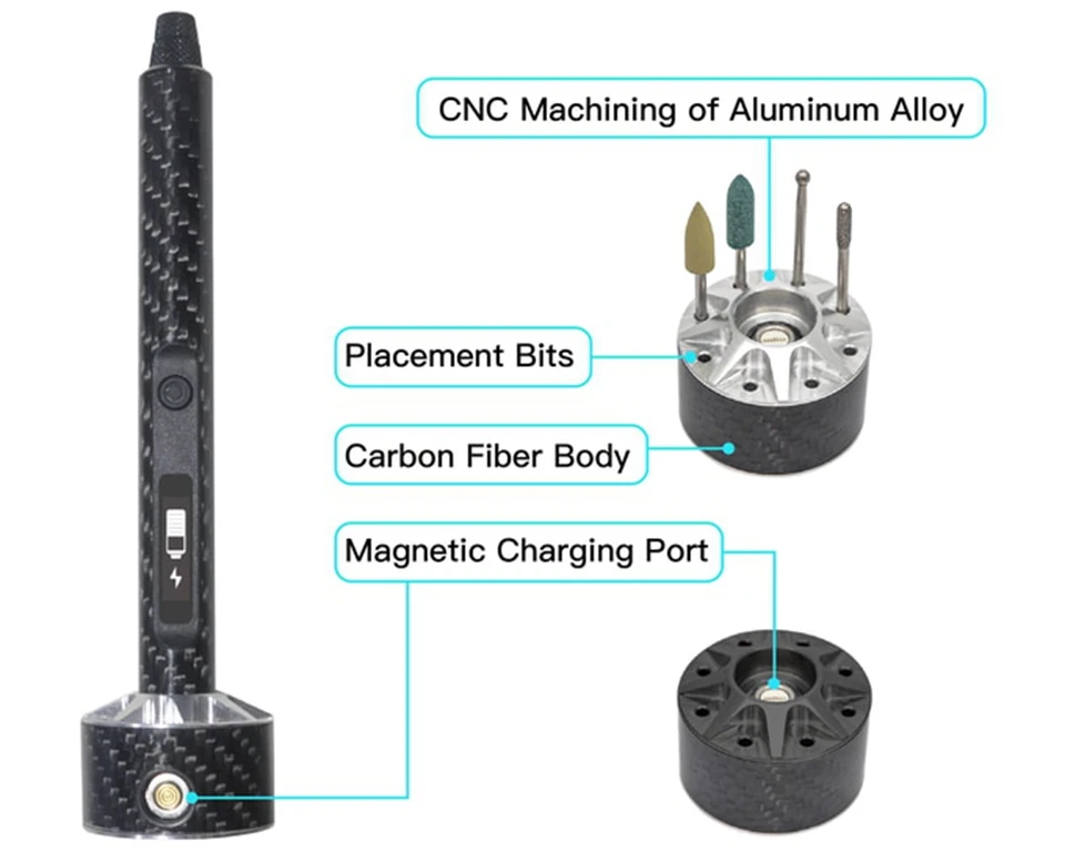 The hollow cup motor we use has the advantage of low noise and low heat generation, even after long hours of work, this rotary pen can remain quiet and calm, which protects the user’s hearing and extends the life of the device. This design makes it suitable not only for quiet studio environments, but also for professionals who need to concentrate on fine operations for a long time.