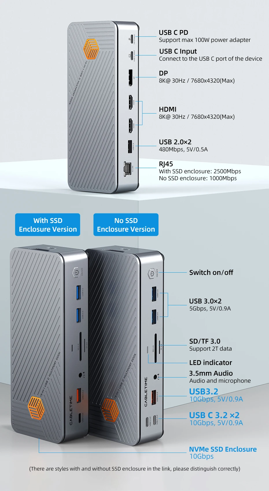 Dual monitor output: HDMI1 + HDM2 = 4K@60HZ + 4K@60HZ; HDMI1 / HDM2 + DP = 4K@60HZ + 4K@60HZ