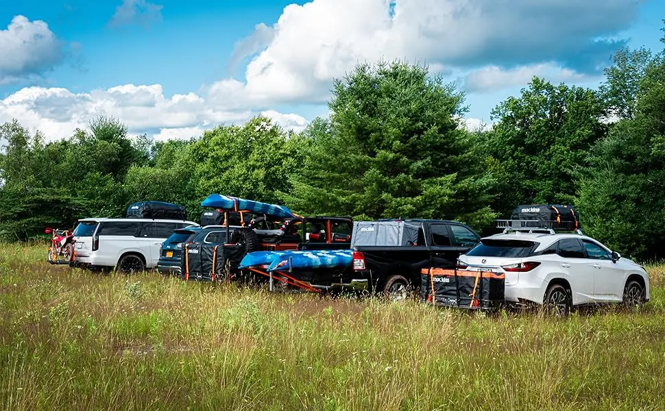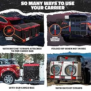 Mockins XXL Cargo Carrier with Cargo Bag, Lights, and many more Accessories Mockins Cargo Carrier + Bag + Ratchet Straps + Hitch Stabilizer Mockins Cargo Carrier + Bag + Net + Straps + Hitch Stabilizer Mockins Gray Cargo Carrier Set with Bag + Net + Straps + Hitch Stabilizer Mockins XL Cargo Carrier +Bag+Net+Straps+Hitch Stabilizer+Hitch Lock & Bag Lock Mockins Extendable Roof Cargo Basket + Bag + Net + Orange Ratchet Straps