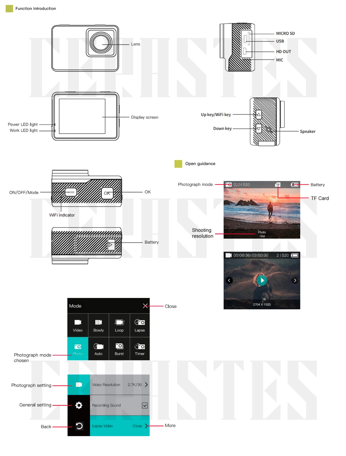 Video encoding resolution : 4K60fps (30fps), 2.7k30fps, 1080P120fps(60fps/30fps), 720P240fps(120fps/60fps/30fps)