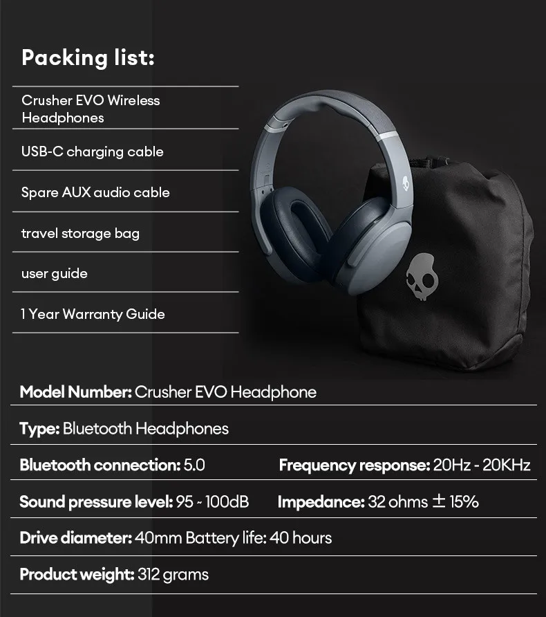 Skullcandy Crusher® is the original, one-and-only immersive sensory bass experience. Turn the slider down for more mellow bass. Turn it up to really rattle your bones. Plus, Crusher® Evo features audio quality improvements over original Crusher so you’ll experience an even broader range of deeper, richer bass.