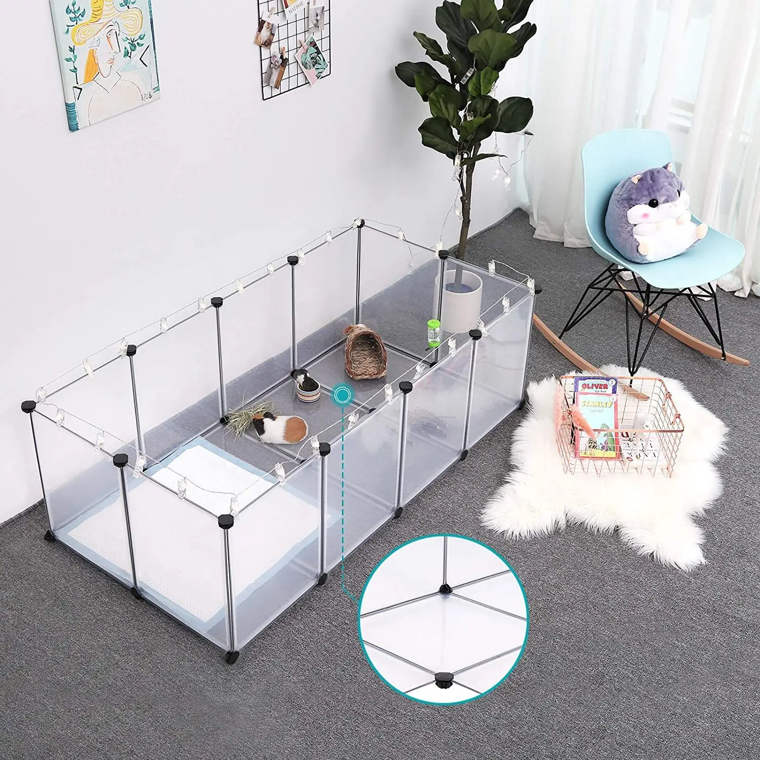 Suitable use for Small Medium Dogs / Cats / Rabbits / Guinea Pig / Hedgehog / Hamster, etc. size of fence: 35x45CM; about 13.78×17.72 inch Specification: pet house with door fence gate set / plastic pet house gate set Option: 6pcs / 8pcs / 10pcs / 12pcs This product is more suitable for small and medium-sized pets. Use the attached buckle to link each plastic partition and use a mallet to knock it in. If you are afraid that the frame will fall apart due to the energetic pets, you can also use the free glue or your home ‘s glue to enhance stability. The transparent plastic pet house can still ensure the curiosity of the pet, it as the shield to let them stay in there, and you don’t have to worry about putting your pet in this wonderful space and still can do some excerise or playing or sleeps life place. Material: 4mm white iron wire (reinforced steel frame) + imported PP plastic 36 wire + ABS wear-resistant buckle Package: plastic gate + abs buckle + small wood hammer Notice: Please allow 1-2cm measuring deviation due to manual measuremant. 1 inch = 2.5400000000102cm Due to the difference between different monitors,the pictures may not reflect the actual color of the item,thank you~ *Due to the item of total weight is more high and about shipping cost is not stable to avoid lose your money, so please feel free to contact us to get the best and cheaper price, thank you~