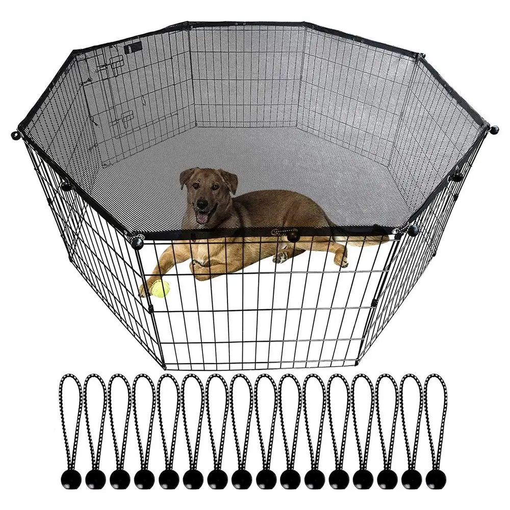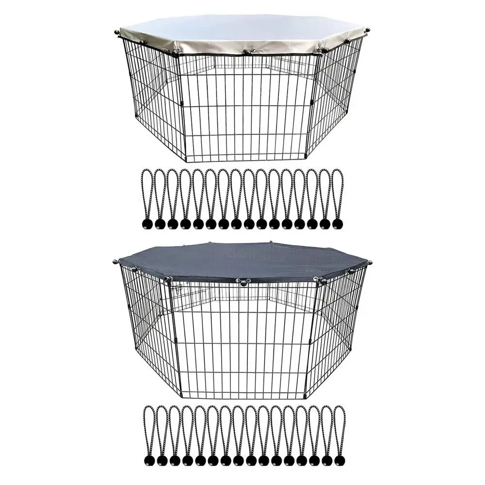 Safe Operation : Playpen Cover is tightly tied together with 16 bungee cords, with only a narrow gap between two fasteners, effectively preventing puppies from jumping out of the fence.