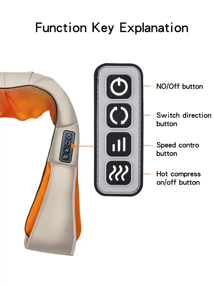 U-shaped massager with 16 rotating finger pressure joints for deep relaxation