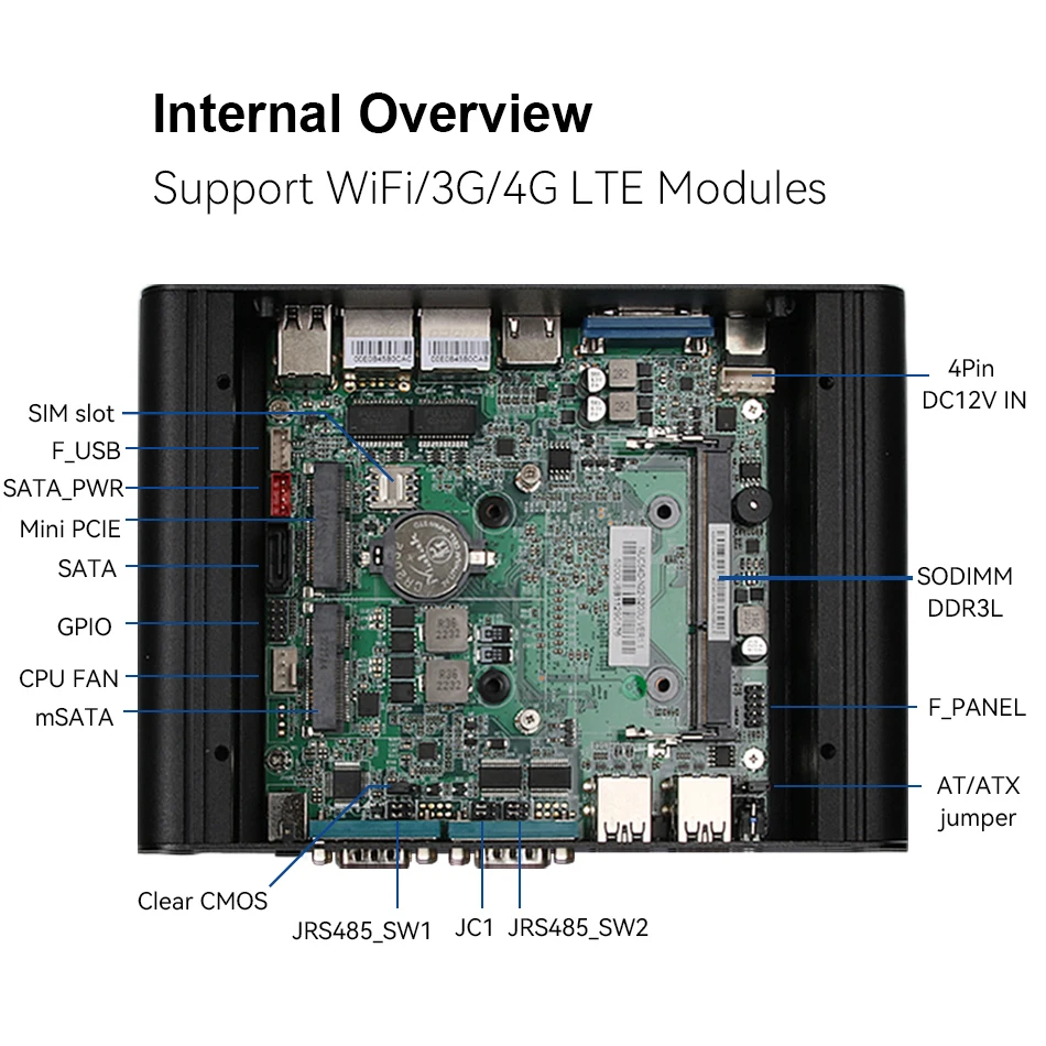 Expansion | 1x mini PCIe slot for WiFi, 4G LTE |