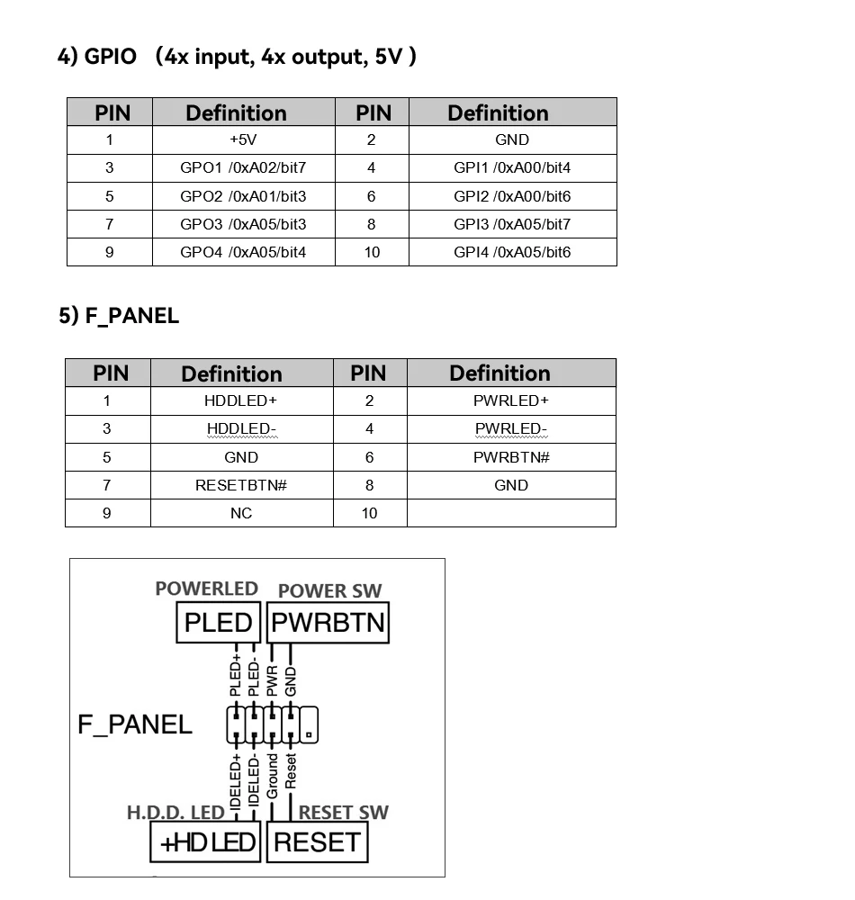 GPIO Pins | 5V, 4x input, 4x output, pin headers on board |