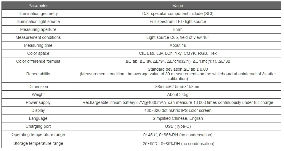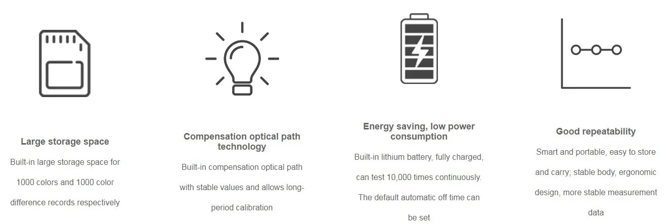 Color measurement can be achieved by touching the screen button or pressing the power button, and the color value can be measured in 1 second.