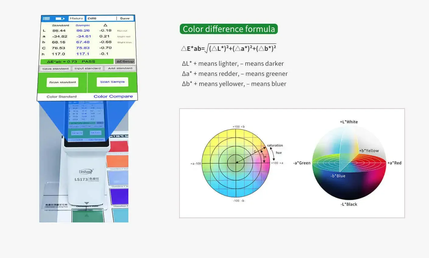 LS173 usually used in paint, metal, stone, ceramic tiles and plastics industries for color measurement and management, color difference quality control. The colorimeter is illuminated by an integrating sphere diffused light source, which is very suitable for color measurement of high-gloss samples.