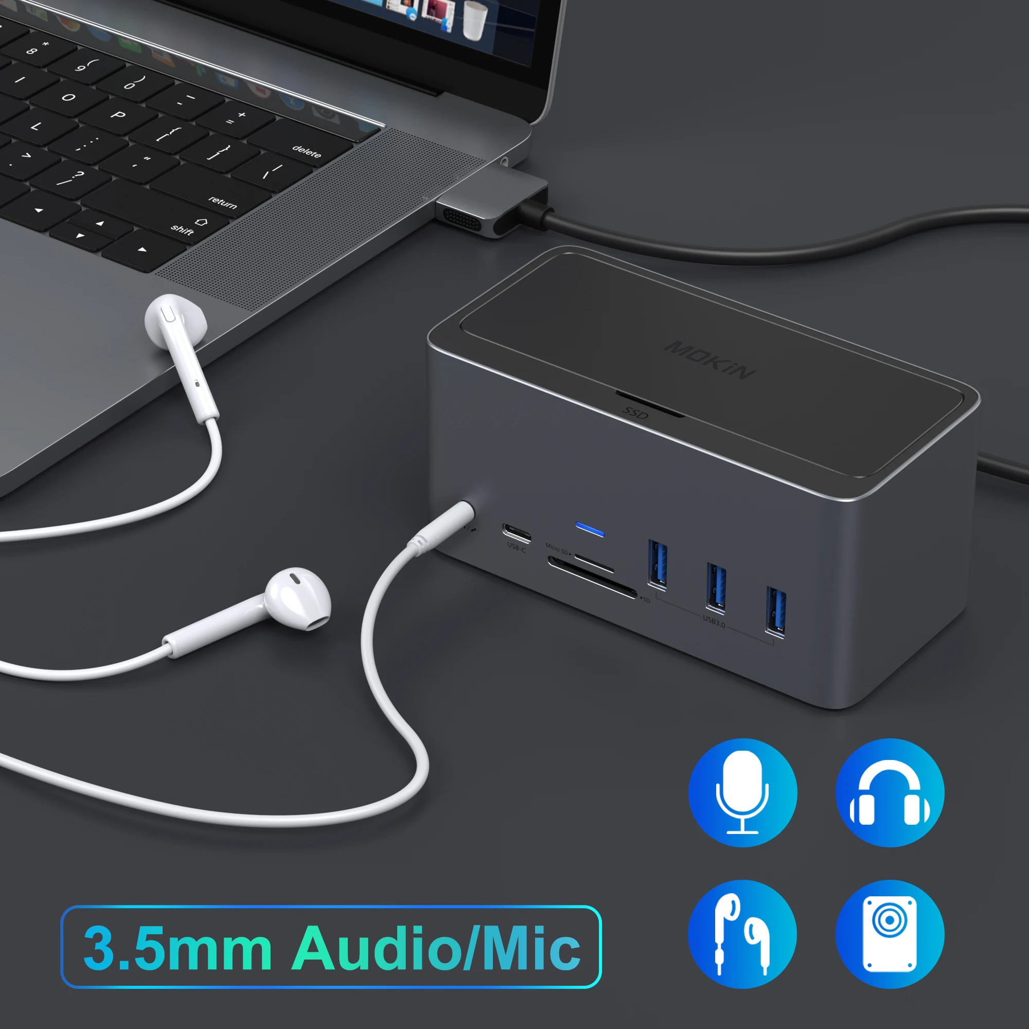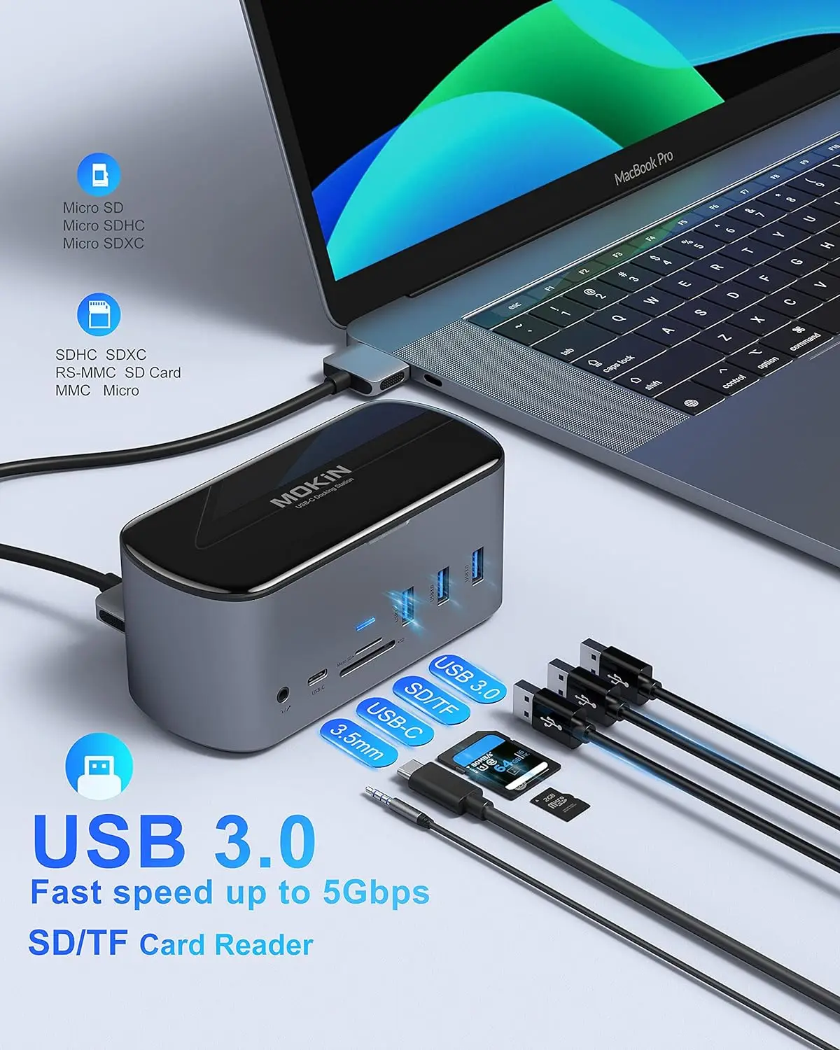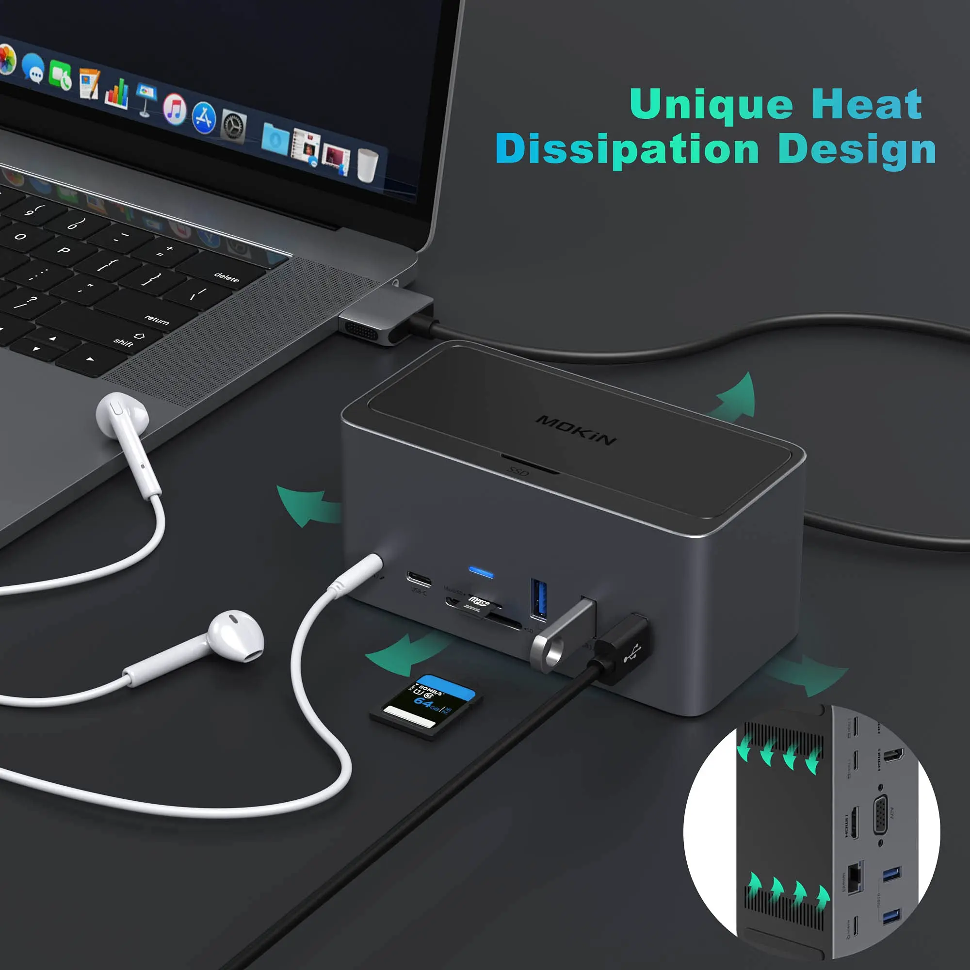 MOKiN 18 in 1 Docking Station USB C to Dual HDMI Adapter SD/TF,VGA, RJ45, Thunderbolt 3,SSD Enclosure,for MacBook Pro/Air 4K 60HZ 10bit