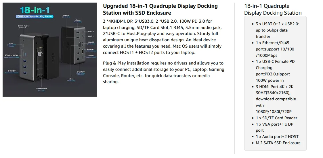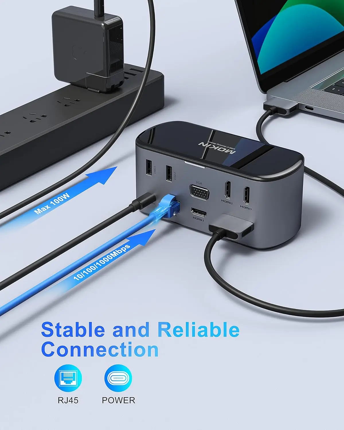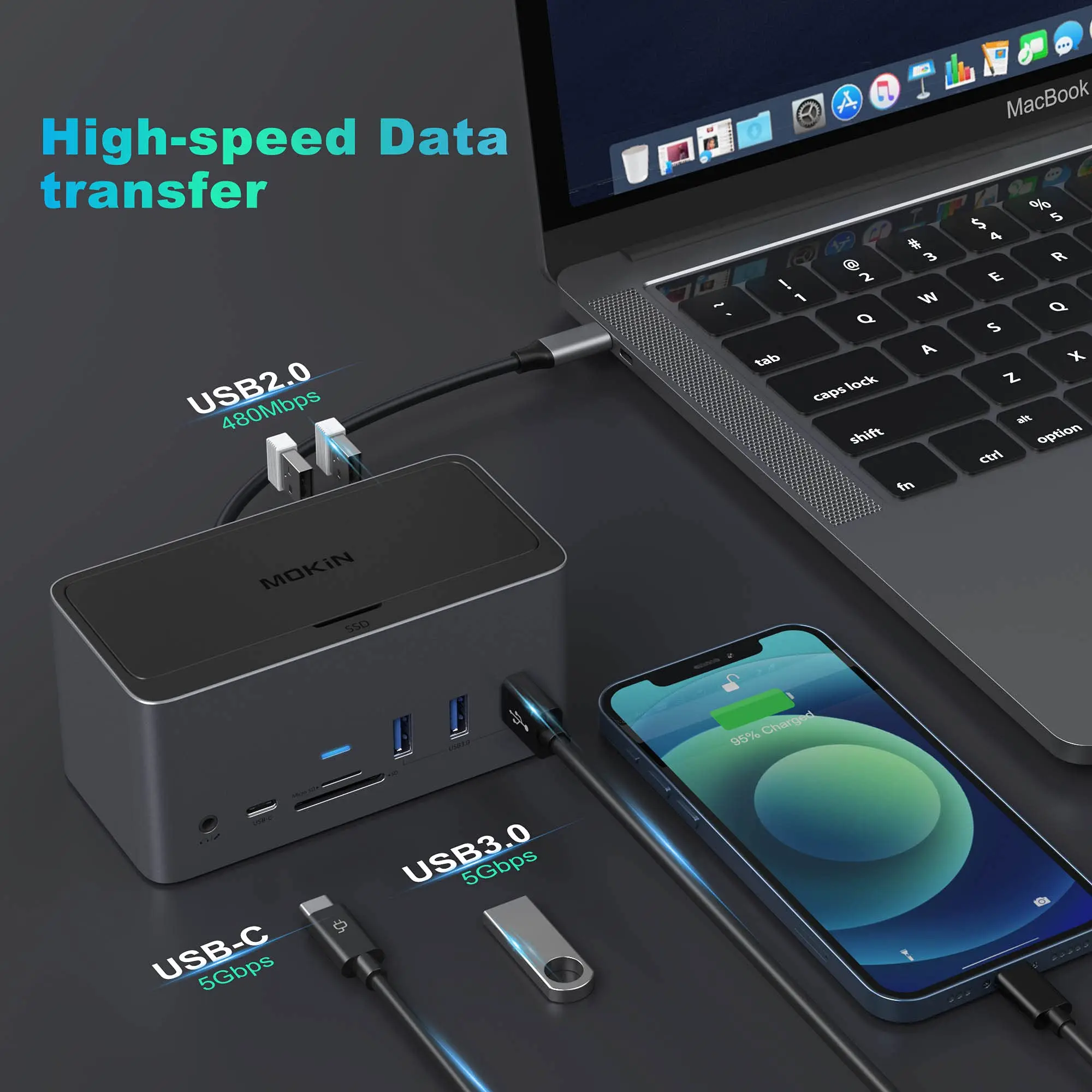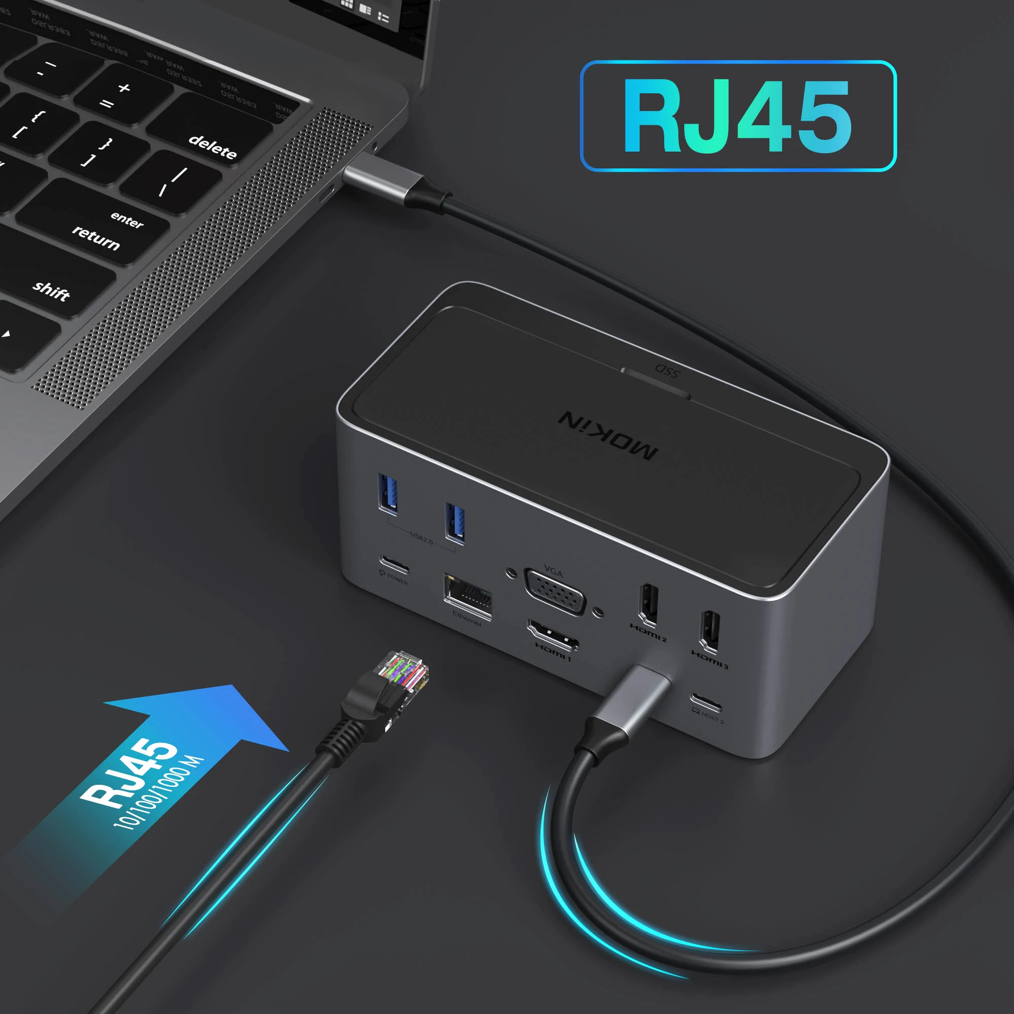 MOKiN 18 in 1 Docking Station USB C to Dual HDMI Adapter SD/TF,VGA, RJ45, Thunderbolt 3,SSD Enclosure,for MacBook Pro/Air 4K 60HZ 10bit