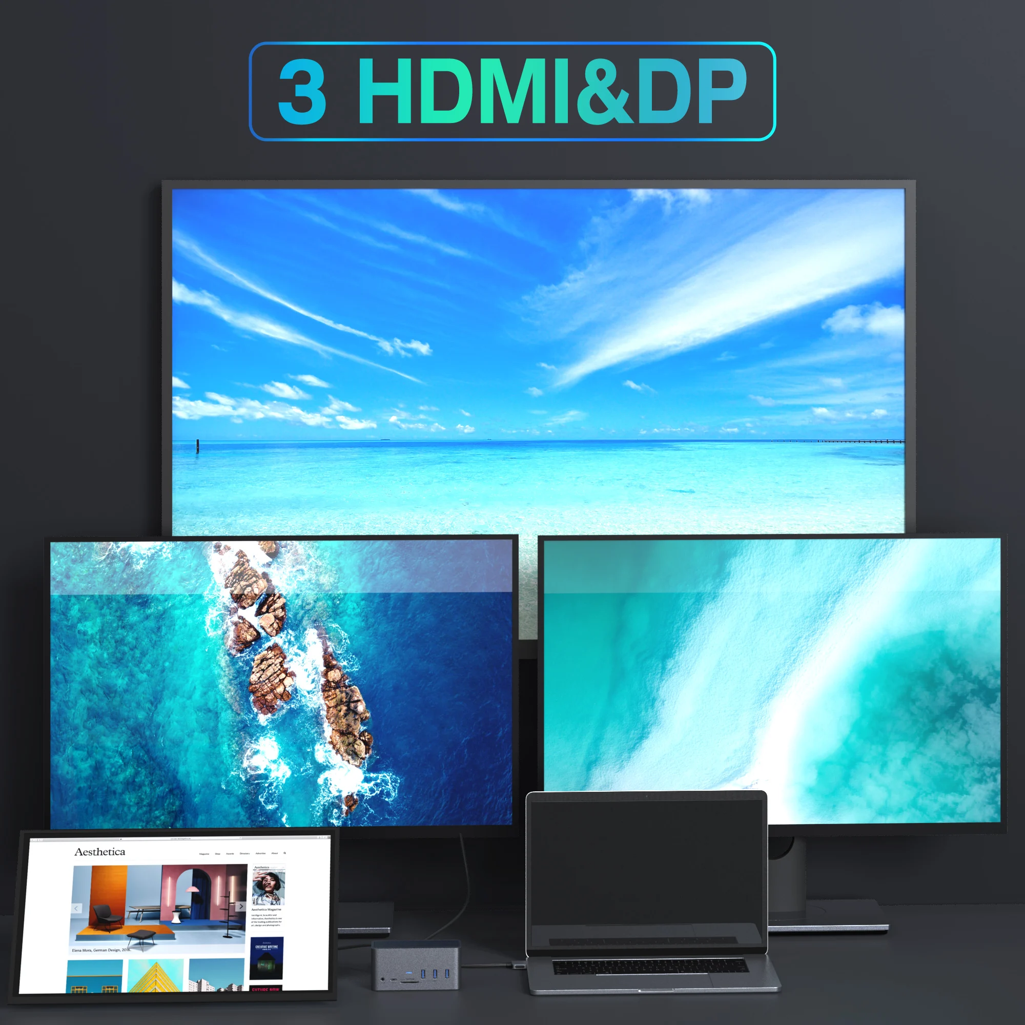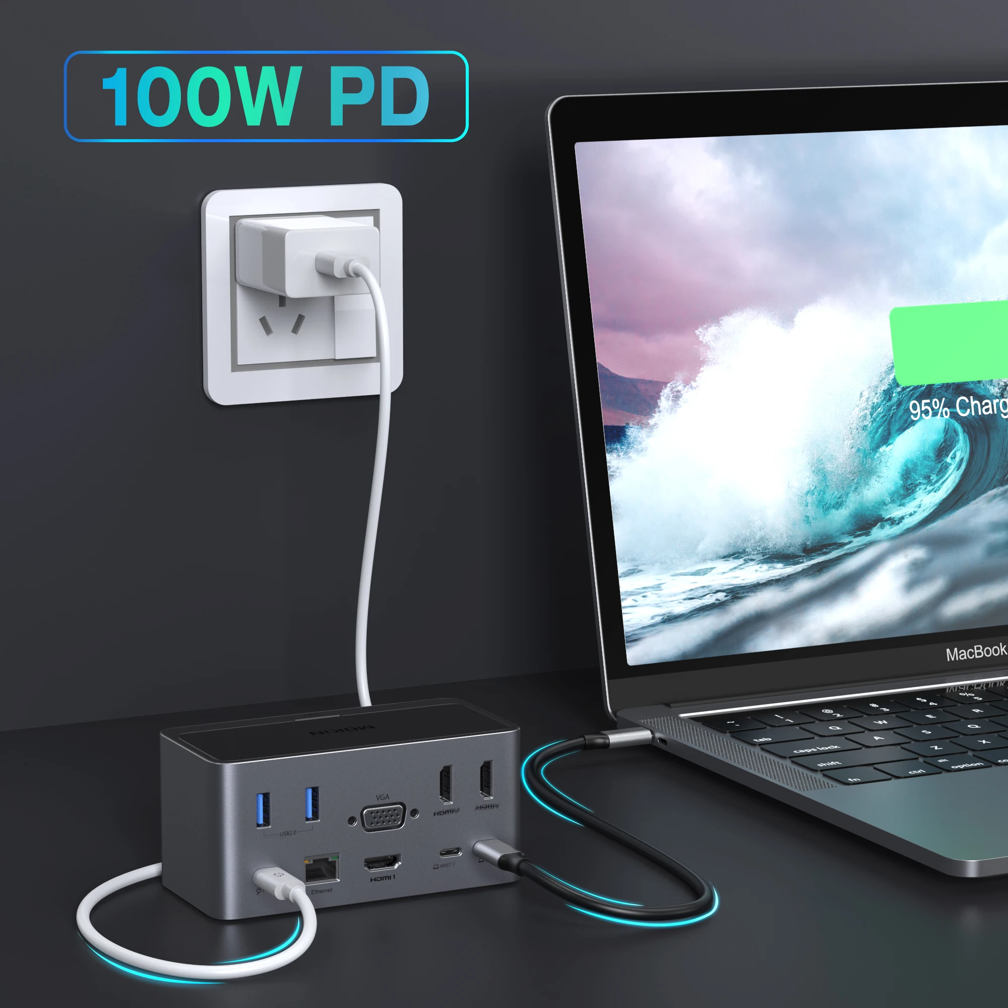 3 x USB3.0 +2 x USB2.0 +1 x Ethernet/RJ45 +1 x PD100W+3 HDMI+1 x SD/TF Card + 1 x VGA +1 x Audio +2 HOST