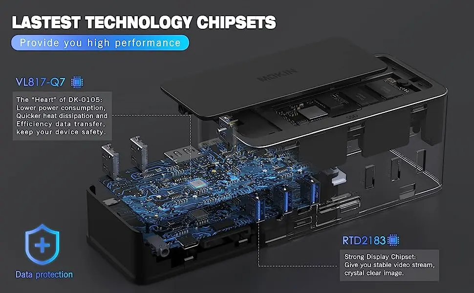 3. USB 3.2: 20Gbps bandwidth, support three Displays