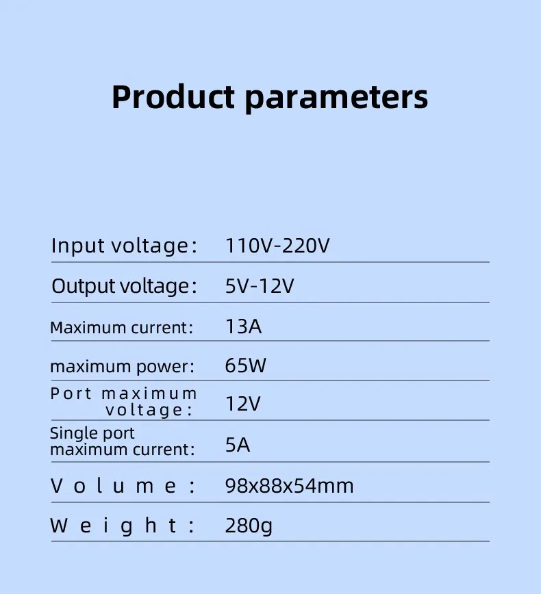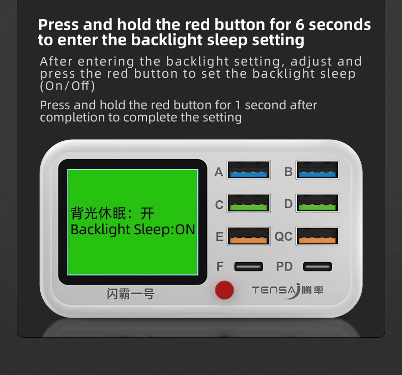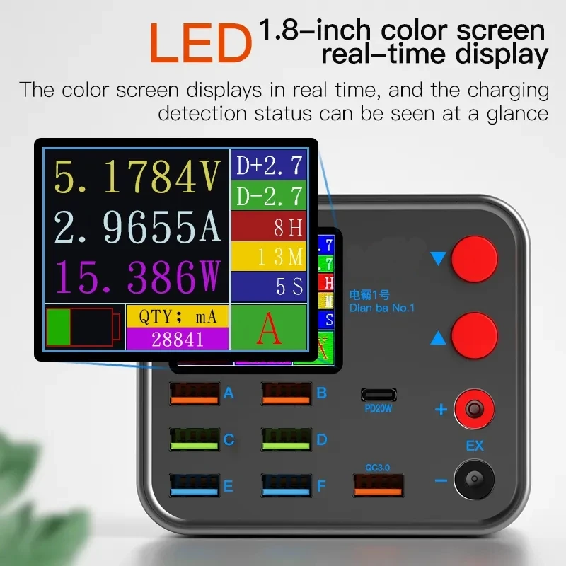 The equipment has 6 high current charging ports, QC3.0, PD20W fast charging port and 10W wireless charging.