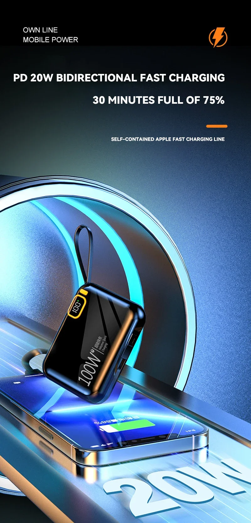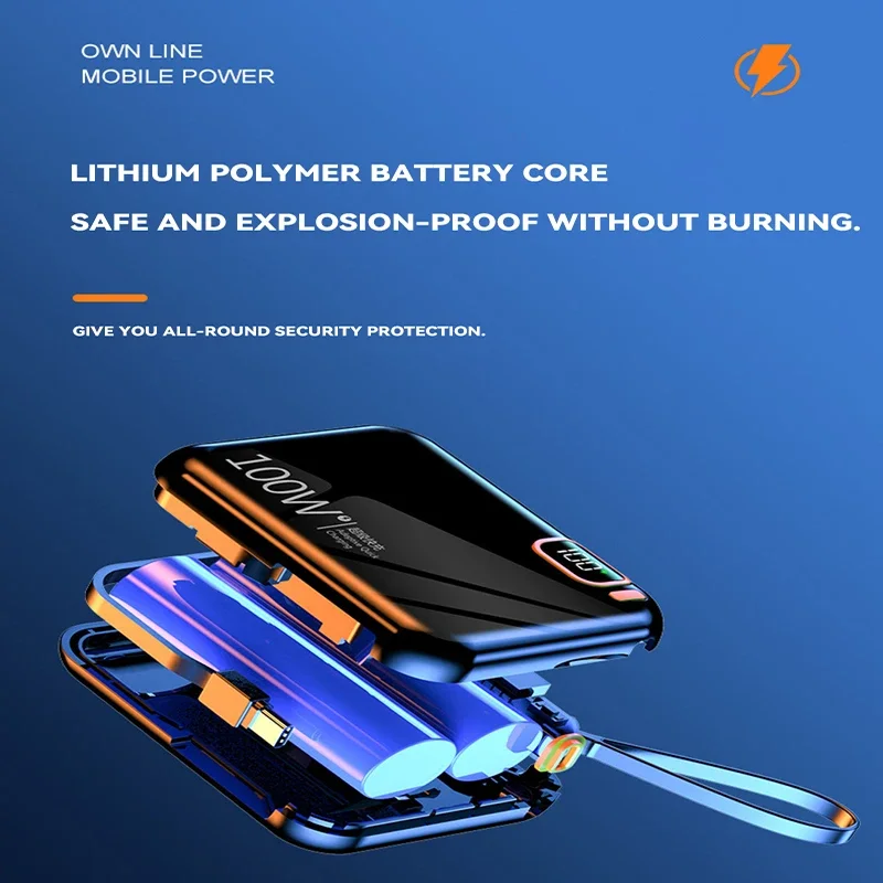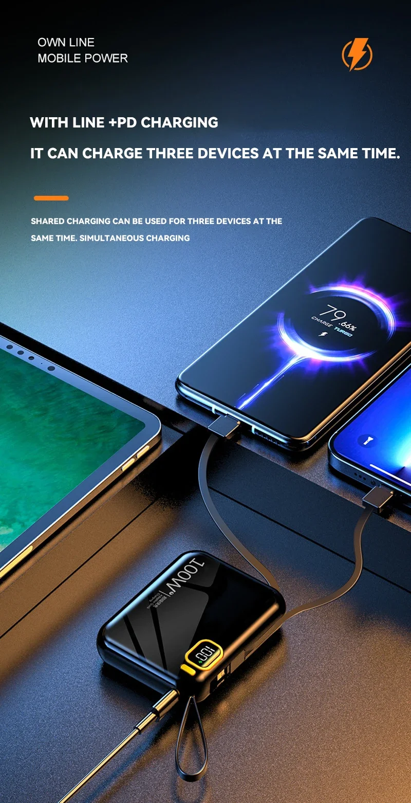New 30000mAh 120W Portable Power Bank High Capacity Cable Two-way Fast Charging Mini Powerbank For Xiaomi iPhone Samsung 2024