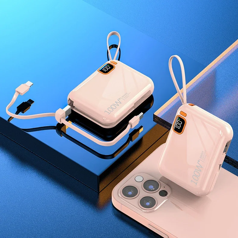 Portable Power Bank 30000mah PD100W Detachable USB to TYPE C Cable Two
