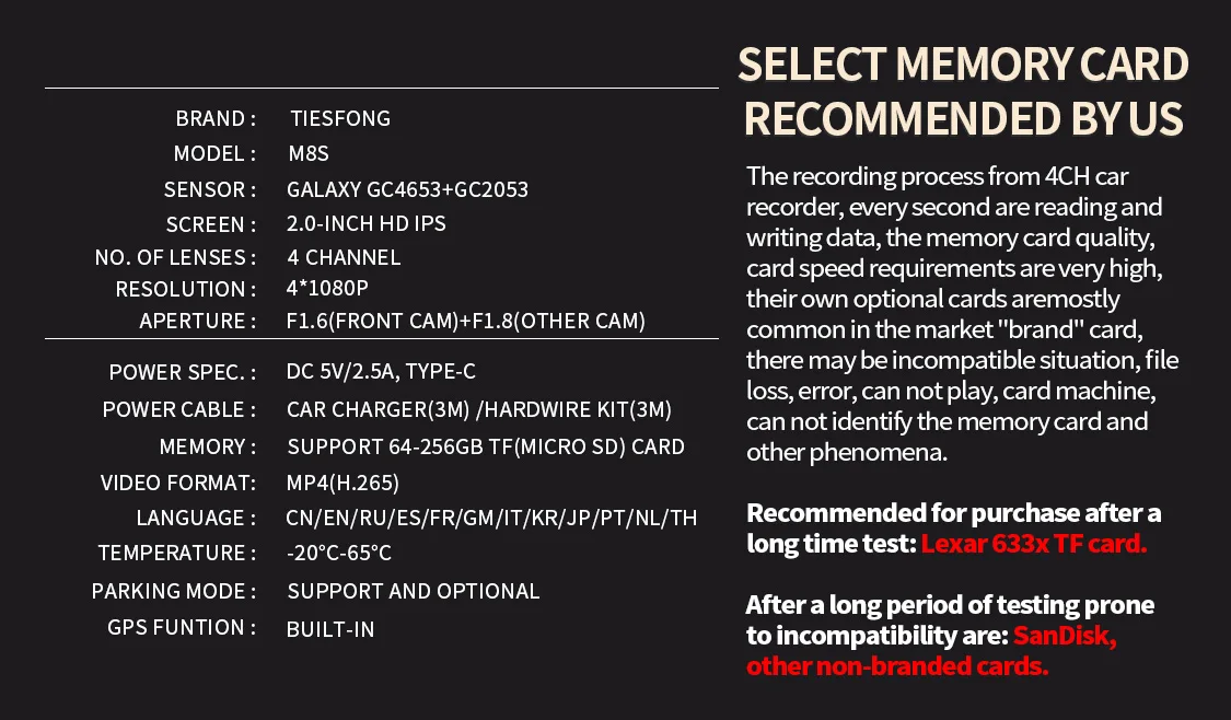 — TiESFONG M8S MINI 4CH Dash Cam —