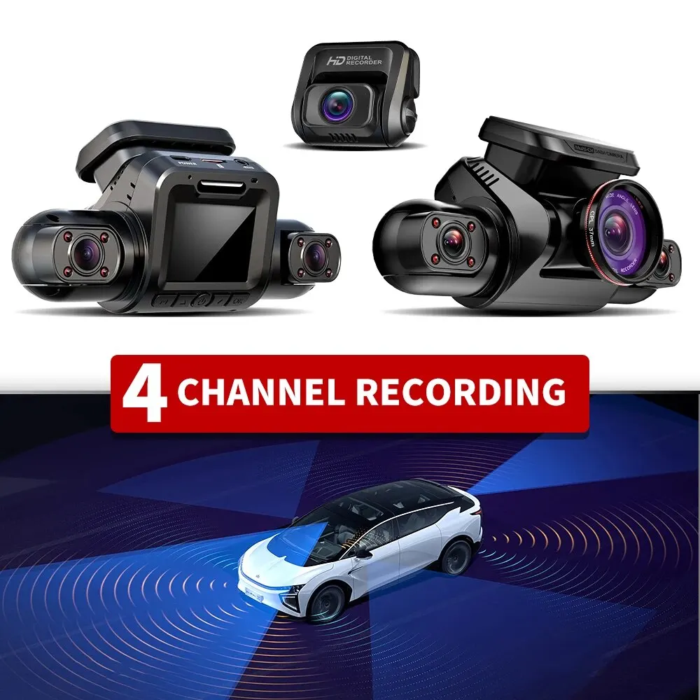 TiESFONG 360 GPS Dash Cam 4CH HD 4*1080P for Car DVR Support 24H Parking Monitor Video Recorder Night Vision WiFi Support 256GBmax