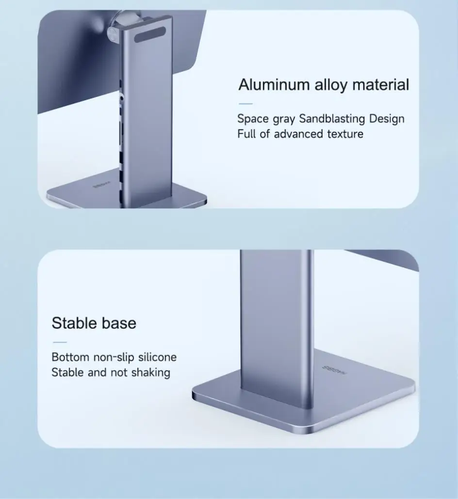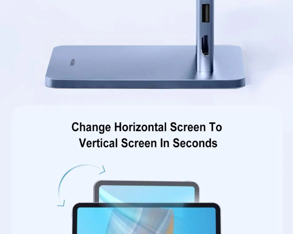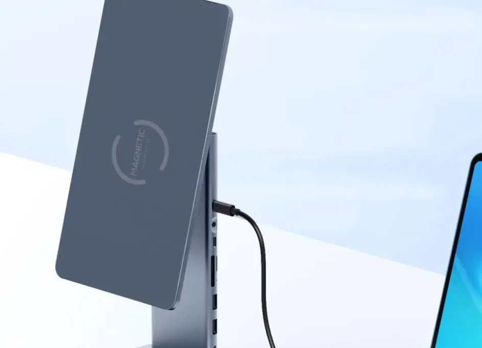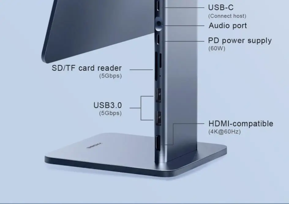 2-in-1 Stand & Hub Hagibis innovative technology combines stand and docking station make it more convenient You can not only have a magnetic stand but also have a USBC docking station with 4K@60Hz HDMI-Compatible, 60W PD, USB 3.0, AUX and SD/Micro SD Card Reader.