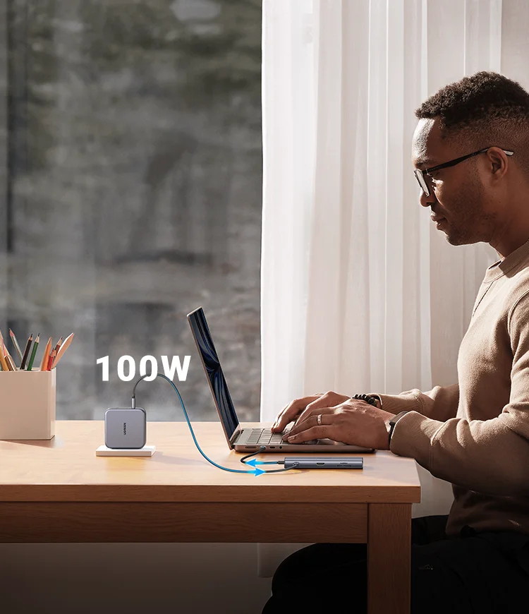 This USB C Docking Station is equipped with a 100W PD charging port. It only takes 1.5 Hours to fully charge Macbook Pro 15”, and without taking up another port of the laptop.