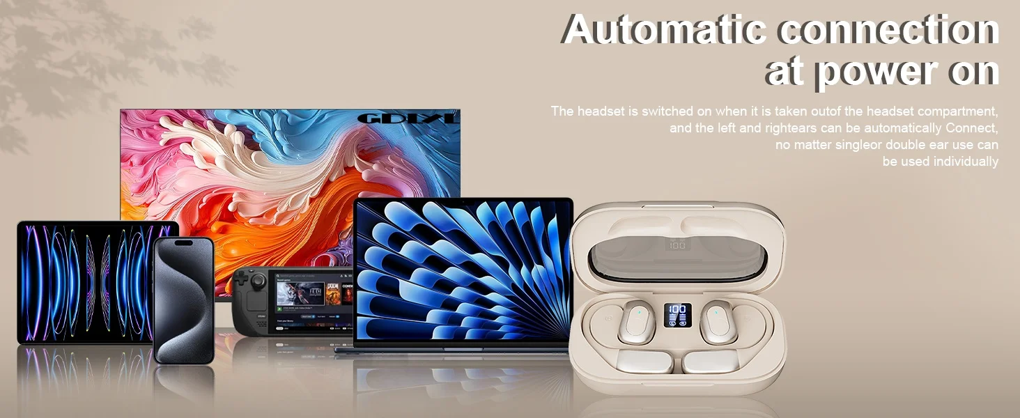 Cutting-edge Connectivity with Bluetooth 5.3: Stay ahead with these open-ear wireless earbuds featuring advanced Bluetooth 5.3 technology. Enjoy rapid data transfer and a stable connection within a 33-foot range. Experience uninterrupted, low-latency audio from the moment you remove them from the case, thanks to the smart auto-on and connect feature.