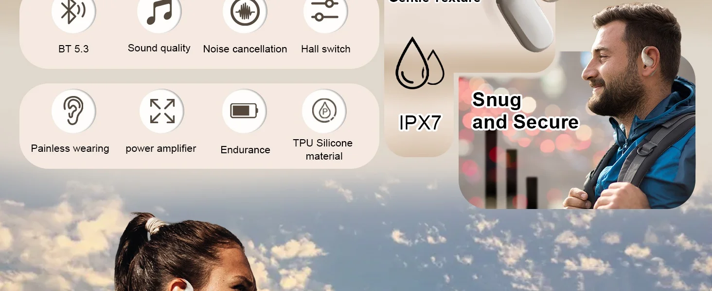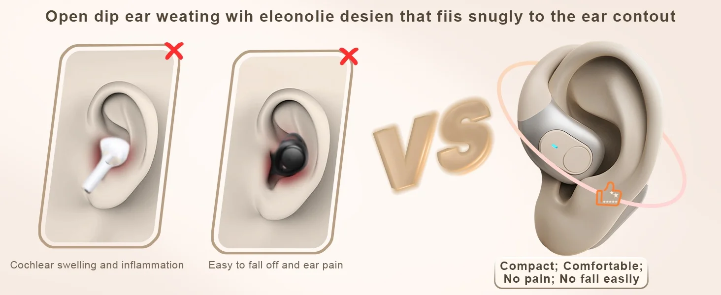 Open-Ear Design for Ultimate Comfort – These wireless Bluetooth earphones feature an open-back design that leaves space around the ears, preventing a complete seal of the ear canal. This minimizes discomfort during extended wear. Their design applies less pressure to the ears and promotes ventilation, reducing sweat accumulation during activities like travel, sports, and hiking. Ideal for outdoor enthusiasts seeking both comfort and performance.