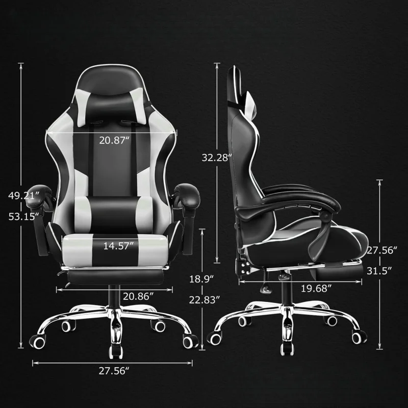 with Footrest and Lumbar Support, Height Adjustable Game Chair with 360°-Swivel Seat and Headrest and for Office or Gaming