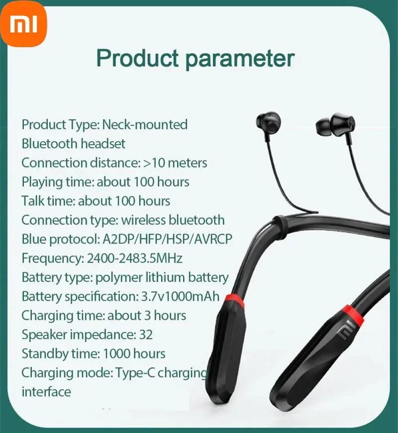 Xiaomi 200 Hours Neckband Bluetooth Earphones Xiaomi i35 Mijia Bluetooth Headset 1000mAh Battery Wireless Headphones Noise Reduction Bluetooth Earbuds Stereo Wireless Earphones Built-in Micro[hone With Carrying Bag Waterproof Workout Neckband Headphones